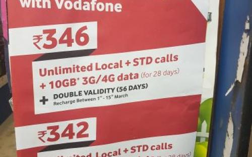 To counter Jio, vodafone has posted ads for unlimited calls with 1 GB data per day for 1 year with 342 recharge of 56 day validity. There is also another recharge of 346 with 10GB data per month and unlimited calls. Pic from a shop wall in Marathahalli taken on 11/3/2017 attached. It also says that it has to be done before 15th March.