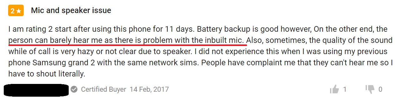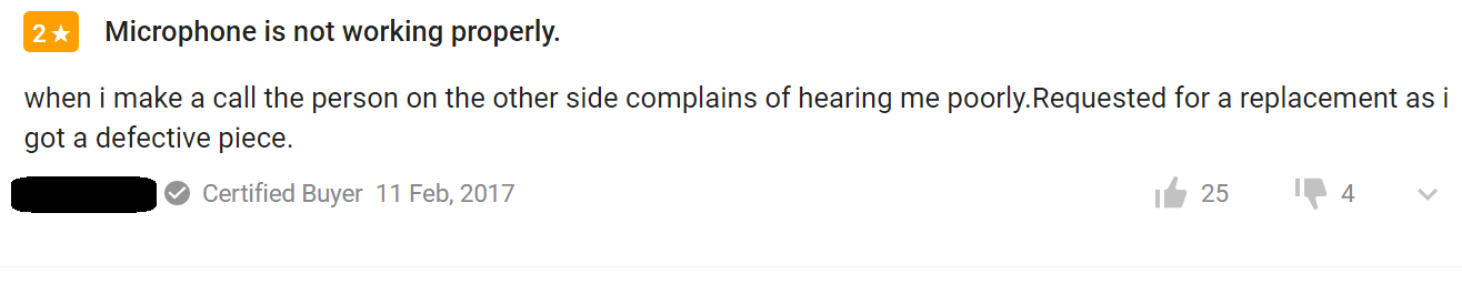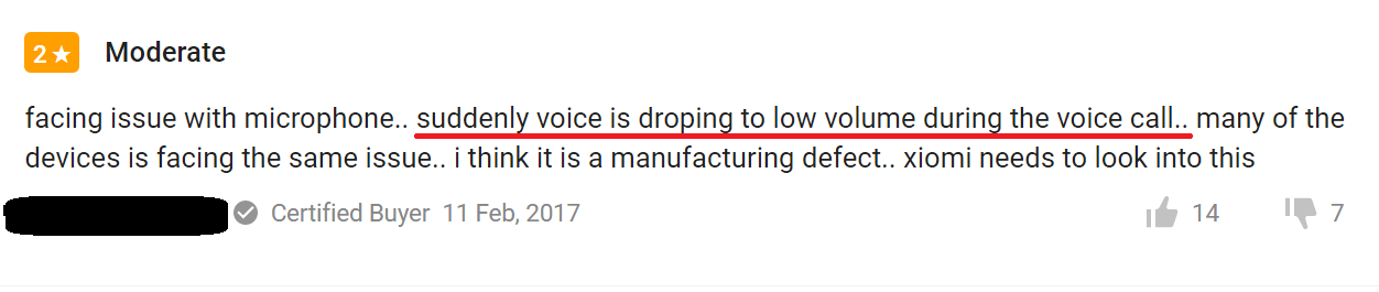 Later while going through the Flipkart reviews for the product, I could see that I am not the only one who is not happy with MI Xiomi Redmi Note 4’s microphone sound quality. I have attached some of the screen shots below. I can confirm that I a facing all of these issues.